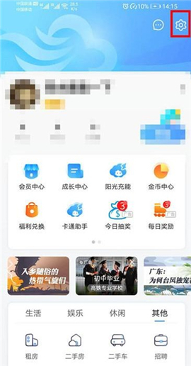 2、然后在我的页面中点击右上角的【设置图标】;