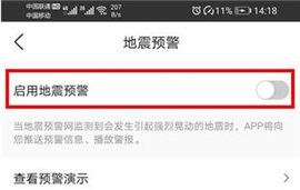 4、最后来到地震预警的点击开启【启用地震预警】即可;