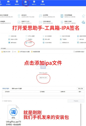 3、发送到电脑用爱思助手签名。