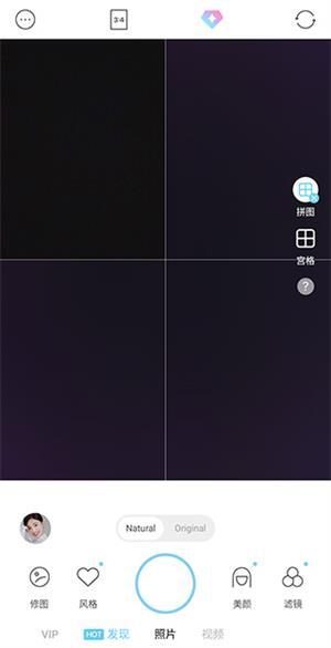 2、点击之后,能看到界面被划分为四个窗口,拍摄4张照片,便可进行拼图。