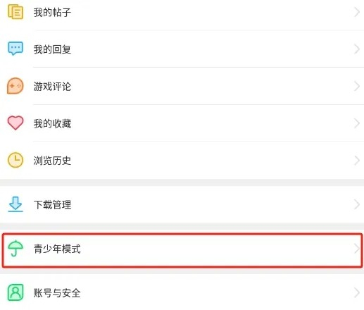 2、打开如下图界面,选择青少年模式选项,点击打开。