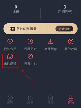 5、如果没有搜索到自己想看的,也不用着急,可以点击“我的”-“求片反馈”进行留言即可。