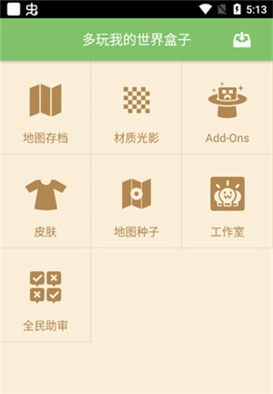 登录后进入应用的“资源”页面,能看到“地图存档”“材质光影”“皮肤”等各类资源。