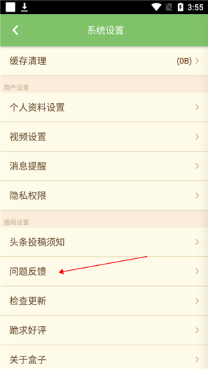 然后在打开的【系统设置】页面中点击【问题反馈】。