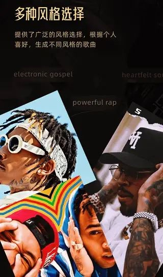 提供了广泛的风格选择,根据个人喜好,生成不同风格的歌曲