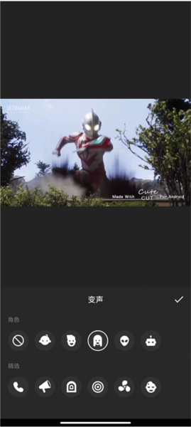 4、轻点视频缩略图,快捷菜单随即弹出,在此可对视频音量等进行调节。完成视频编辑后,点击左下角的加号,在弹出的界面中,挑选要合并的第二个视频,然后点击对号即可添加。