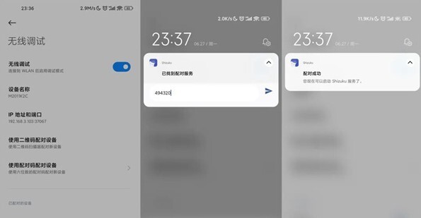 在Android 11及以上版本中,若支持无线调试,通过无线调试启动,您便能直接在设备上开启Shizuku 。