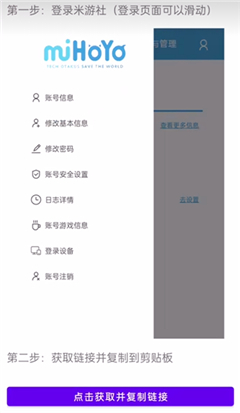 2. 开启yuanshenlink APP,完成登录操作后,点击位于界面最下方的“点击获取并复制链接”按钮,此时抽卡分析链接便会自动拷贝至剪贴板。