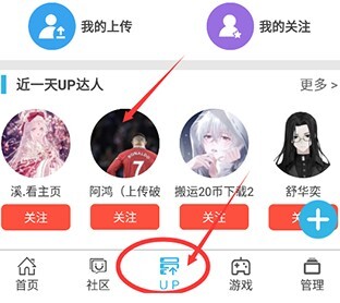 4、如果是想要找到自己想要游戏的应用的话,那必须也是点击“up”功能按钮;