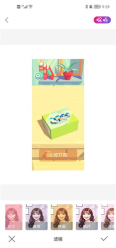 3、在这里可以选择各种滤镜、裁剪、相框以及标签;