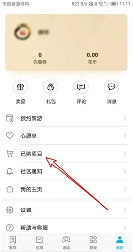 第三步:接下来在打开的我的页面,点击已购项目的设置项。