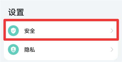 第一步:在设置界面中,点击安全(如图所示)。
