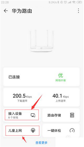 6、点击“查看更多”,便能看到该路由器所支持的全部功能。像客人WiFi(专门为客人单独设定一个WiFi名称与密码,防止密码泄露)、WiFi设置(对WiFi名称及密码进行设置)、定时开关(设定WiFi的开关时间,强制在夜间准时休息)等等,此外还有许多实用功能,等待您自行去探索呢。