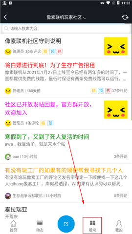 2、进入玩家社区界面后,点击下方导航栏的版块界面。