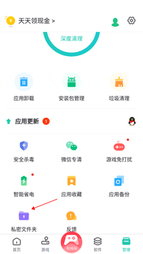 4、除热门下载功能外,我们还能进行应用卸载、安装包管理、游戏免打扰等设置,助力我们更优地管理手机应用,实现内存使用的最大化!