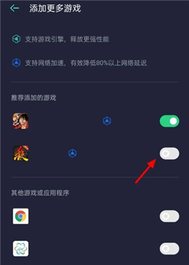 2、进入添加界面,单击要添加应用右侧的开关。