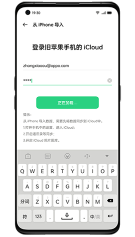 1. 开启OPPO手机的搬家应用,接着选择“从iPhone导入”选项。随后输入苹果手机对应的iCloud账号与密码。