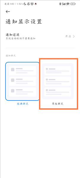 之后,我们接着打开设置 - 通知与控制中心 - 通知显示样式,选择原生样式。这里需要注意,如果不更改成原生样式,后续可能会出现没有授权弹窗的问题。当然,要是出现此问题,可通过把黑域变成小窗的方式解决,但建议最好还是将其改成原生样式。