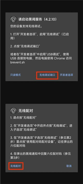 然后我们打开黑阈,会有一个弹窗点击-无线调试端口-无线配对。