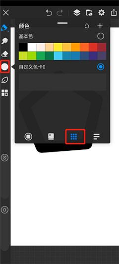 1. 打开画世界pro绘图软件后,要先新建一个草稿,之后便会进入绘画界面。【色盘】工具位于左侧工具栏,其形状是一个小圆圈,具体如图所示: