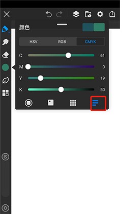 4、若想对颜色进行更为精细的调整,在选定一个大致颜色后,不妨点击第四个图标。在此处,不仅能够调整H、S、V的数值,R、G、B、C、M、Y、K的数值同样可以调整,大家不妨亲自上手调试一番~