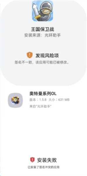 安装时提示「签名冲突/不一致/异常」;
