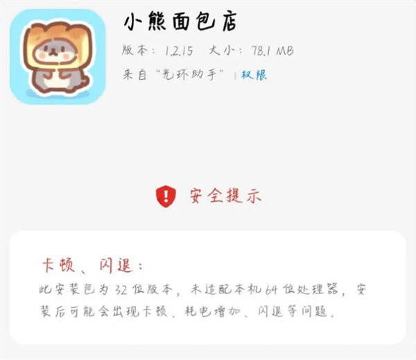 当前市面上依旧存在不少游戏是32位安装包,而这些机型通常会默认向用户推荐安装64位应用,因而在安装过程中会出现提示拦截的情况。