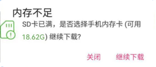 安装提示「内存不足SD卡已满」