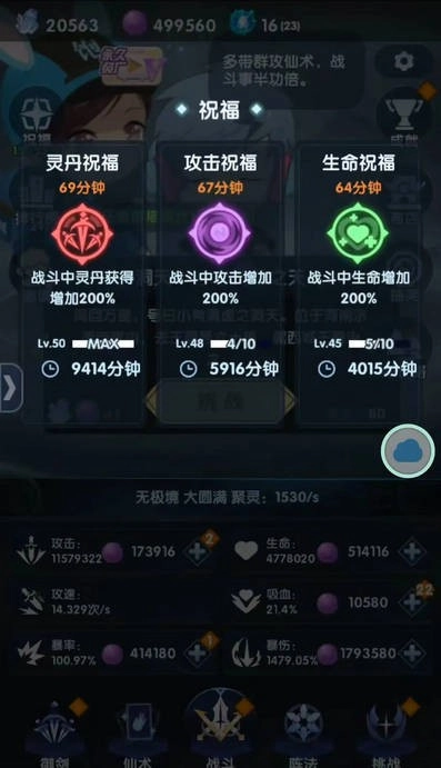 二、祝福建议拉满,满级200加成灵丹加成主要来源之一群里老版本没有祝福上限,可无限刷祝福,满级大概在37级左右所需时间6小时左右