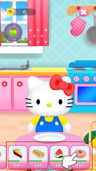 3、凯蒂猫出现后,点击苹果就能给它喂食。