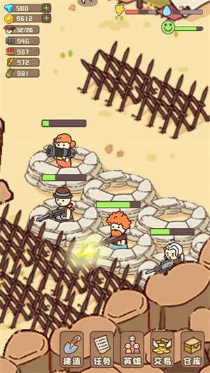 5、满足村庄生存消耗,村庄外围需要布置防线,指派居民驻守,装备枪炮抵御汹涌而来的尸潮。