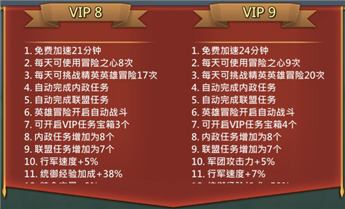 建议买到8就停止,有能力可以买到9停止,多一个VIP任务多加成50%的统御经验。