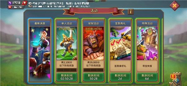 11、地狱活动可以秒一秒。地狱活动分几个阶段,城堡达到14、18、22、25会进入下一个阶段,建议在17、21、24的城堡等级时卡一卡,方便完成地狱活动;