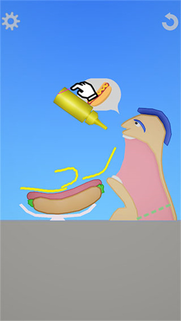 3、按要求把蛋黄酱挤在热狗上,再把食物拖入他的嘴中