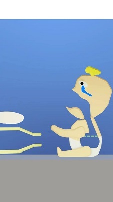 1、可以看到,图里有一个张着嘴等待进食的人,以及与之对应的食物。