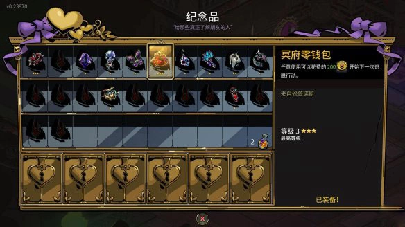 玩家第一次赠送NPC仙酒会受到回礼,这些回礼可以理解为饰品,佩戴时都会有额外的效果。携带饰品进行战斗能够让其升级,饰品和武器在同一房间玩家可以在战斗前和完成一张地图时进行更换。