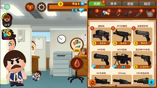 3、点击老板,可以将武器投掷到老板身上进行攻击。