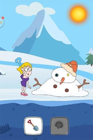 第1场景:小姐姐遇到一个挡路的雪人,选择太阳,然后雪人融化,小姐姐通过