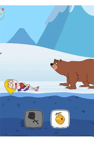 第2场景:小姐姐遇到一头灰熊,选择玫瑰花,然后小姐姐倒下装死骗过灰熊