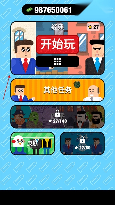 子弹先生间谍谜团是一款玩起来超爽的手机物理弹射射击游戏,属于那种一发子弹弹来弹去,就能把敌人全解决掉的趣味小游戏。在游戏里,我们要扮演特工“子弹先生”,得借助物理弹道把地图上的坏蛋都清理干净!这款游戏对操作要求不高,但得把角度和反弹路径算明白,要是一枪能解决好几个敌人,那种爽快感简直让人头皮发麻!而且,游戏里的关卡特别丰富多样,甚至还有PVP对战模式,赶紧来体验一下吧。