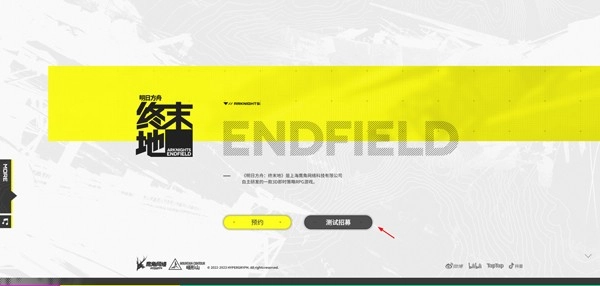 1、打开明日方舟终末地:https://endfield.hypergryph.com/home,点击下方测试招募;